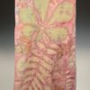 Gorgeous botanical printed silk scarf by Nancy Evans, in plum purple, peach, beige, and green colors. Also called eco-printing or eco-dyeing, botanical printing is the process of wrapping and steaming plant material onto fabric to create various patterns and prints. The dye material is placed onto the fabric with flowers, leaves, bark, branches or seeds, and then folded and wrapped around a pole or tied into a bundle. When heat or steam is applied, the colors release onto the fabric, transferring the shapes of the plant material directly into the fibers. With layers of ferns and a variety of leaves, this elegant scarf may quickly become your favorite accessory.