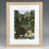 Framed fiber collage titled “Venturing Out” by Cheryl Miller. Frame is mounted and ready to hang. It’s best to display this collage away from direct sunlight.