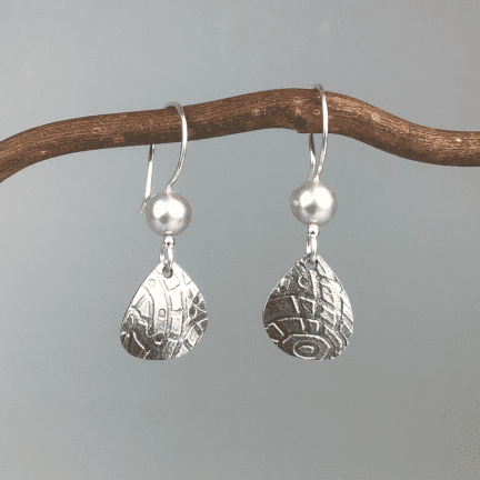 Measures 1-1/2 inches from top of ear wire to bottom by 1/2 of an inch at widest.