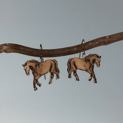 Hand drawn horse earrings with colored pencil on polystyrene with oxidized sterling silver ear wires.