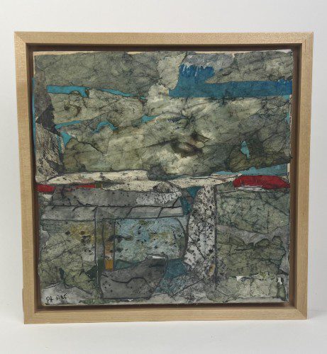“Threshold” mixed media wall art by Peter Anderson. Mixed media work with prepared and cut paper on panel.