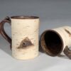 Beautiful handcrafted ceramic teapot with “chocolate” glaze and acorn top, by Richard Roth. Richard has become well known for his delightfully realistic woodland pottery. This piece is fully functional for steeping and serving tea, and aesthetically beautiful as a piece for your kitchen or dining room.