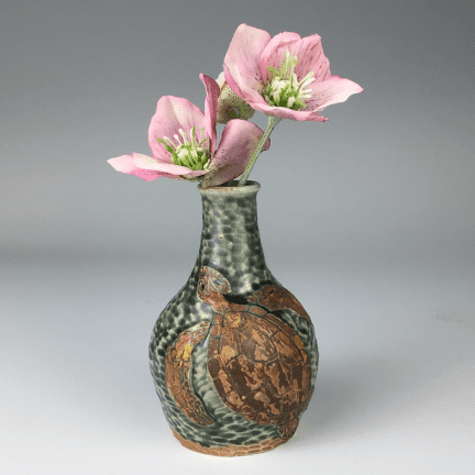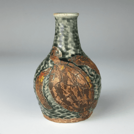 Medium handmade ceramic and hand-carved vase with swimming sea turtles by Wendy Jackson.