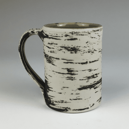 Taller ceramic birch mug with a green interior.